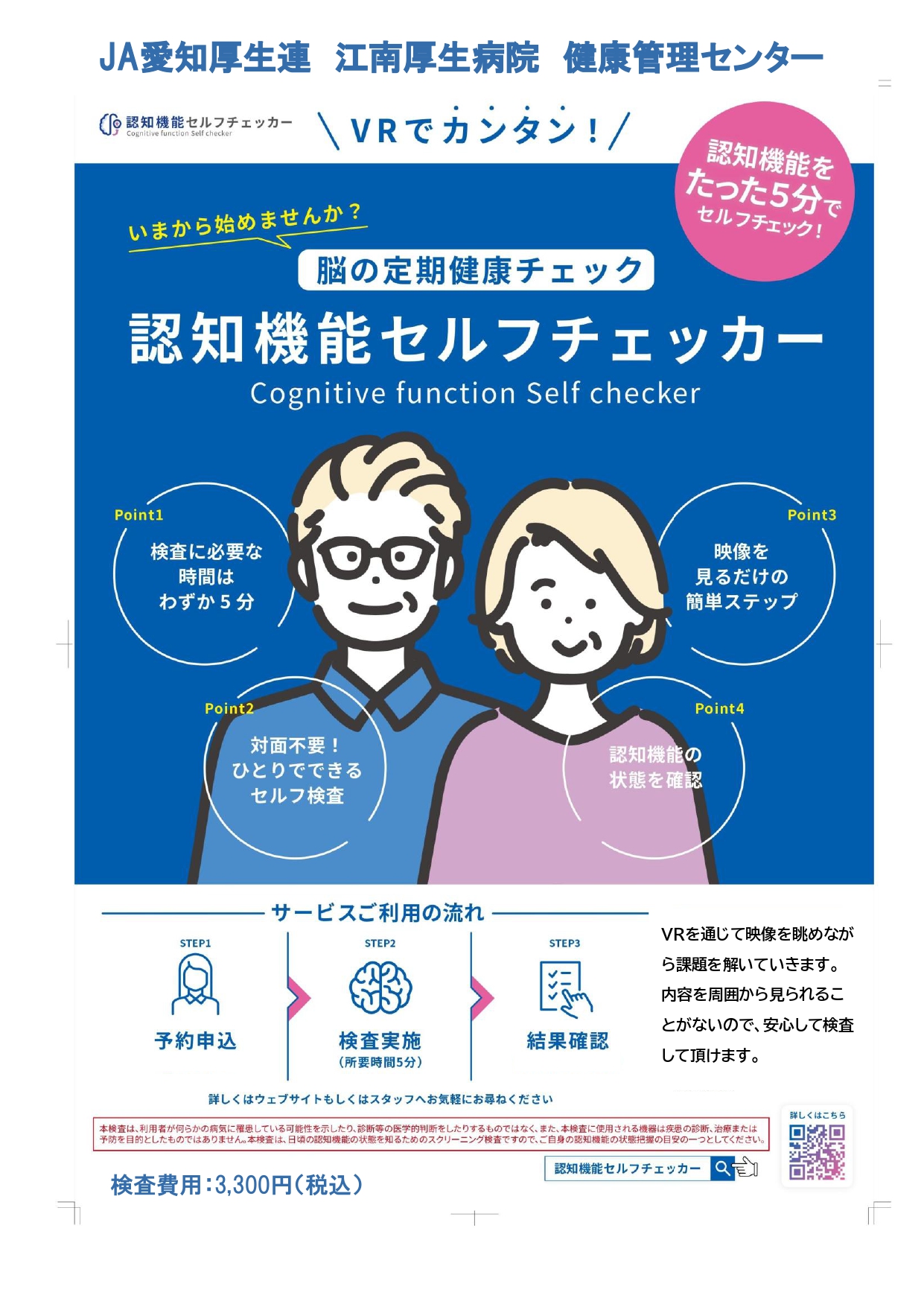 以前より準備中でした、『VRによる認知機能セルフチェッカー』オプション検査項目が2025年12月1日より検査開始となります。