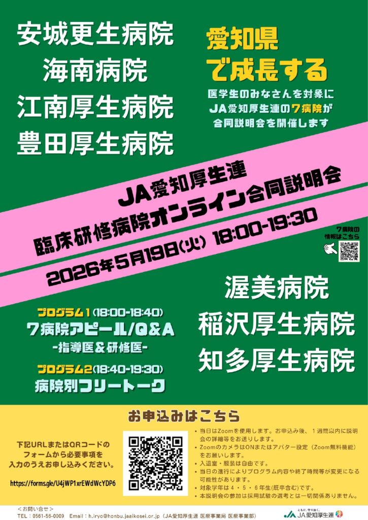 JA愛知厚生連オンライン臨床研修病院合同説明会 開催のご案内